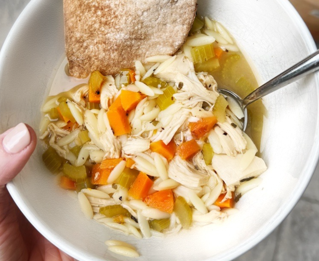 At its core, this is a classic chicken soup, but it has a fresher, more vibrant personality. The bright lemon juice wakes up the broth, while a mix of Greek-inspired herbs gives it a savory depth that feels both cozy and refreshing. The result is a soup that tastes nourishing and clean, but still hearty enough to count as a full meal.
