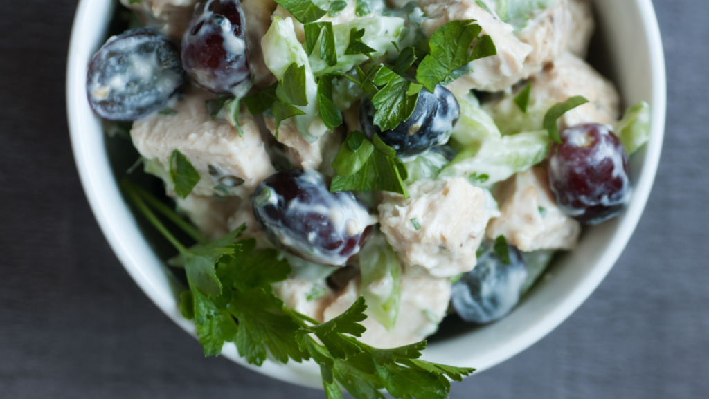 What makes this version stand out is the balance of textures and flavors. The chicken creates a hearty base, while the celery adds freshness and crunch. Grapes bring a juicy sweetness that keeps the salad from feeling too heavy, and pecans add a rich, nutty bite. Everything is tied together with avocado oil mayo, a touch of honey, and simple seasoning. The end result is classic chicken salad with just enough personality to make it memorable.